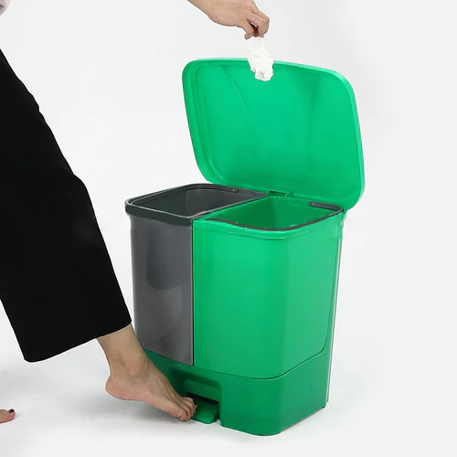 Dust Bin, Plastic, Rectangular, Center Pedal, Dual Compartment, 20 L